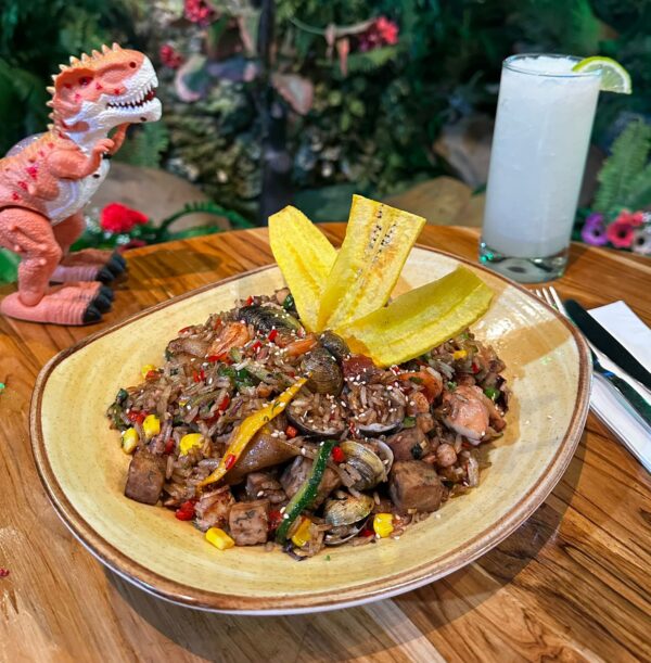 Arroz salteado al estilo oriental con una mezcla de mariscos, vegetales frescos y salsa de soya, terminado al wok para lograr un sabor intenso.