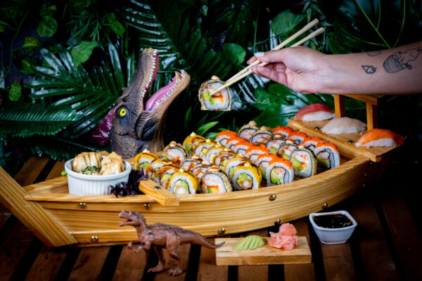 1 Fuji roll, 1 California,1/2 philadelfia, 3 Nigiri y 1 ensalada surimi.